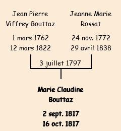 Mère : Jeanne Marie Rossat | Marraine : Marie Bouttaz (soeur du baptisée) |