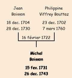 Père : Jean Boisson (décédé) | Parrain : Michel Viffrey Bouttaz (a signé) |