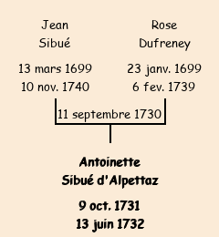 | Père : Jean Sibué d'Alpettaz | Parrain : Noël Sibué d'Alpettaz (fils de Georges décédé) |