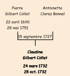 | Mère : Antoinette Claraz Bonnel | Marraine : Claudine Sibué d'Alpettaz (épouse de Michel Gilbert Collet) |