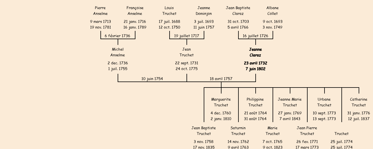 Mère : Urbaine Gilbert Collet | Marraine : Jeanne Claraz (épouse de Michel Truchet) |