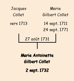 Mère : Marie Gilbert Collet | Marraine : Marie Antoinette Gilbert Collet (fille de Michel décédé) |