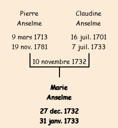 Mère : Claudine Anselme | Marraine : Marie Anselme (fille du Pierre précédent) |