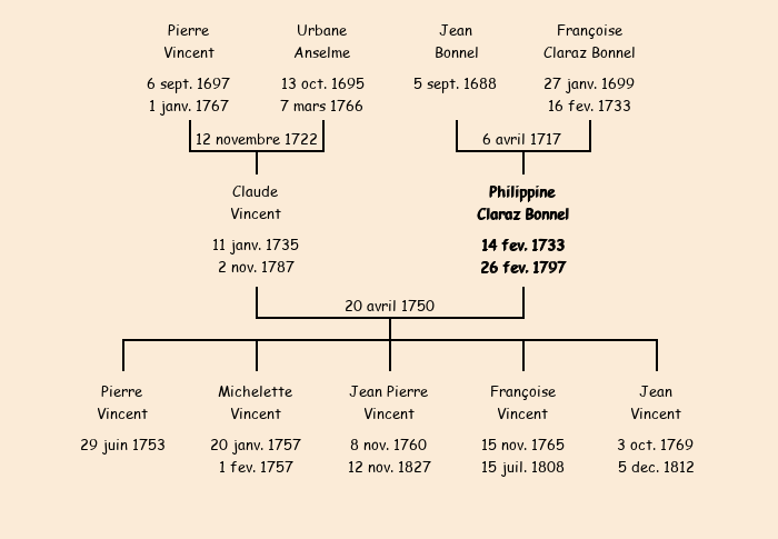 | Mère : Françoise Claraz Bonnel | Marraine : Philippine Viffrey Bullière (fille de Laurent) |
