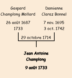 Père : Gaspard Champlong (décédé) | Parrain : Jean Antoine Bonnel |