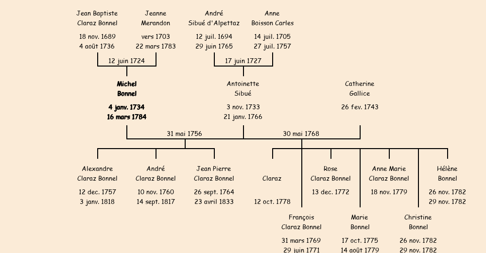 | Epoux : Michel Claraz Bonnel, fils de feu Jean Baptiste |