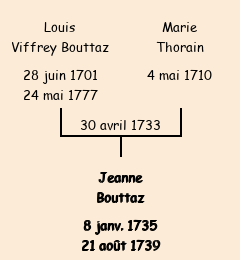 | Mère : Marie Thorain | Marraine : Jeanne Bouttaz (fille de Jean) |