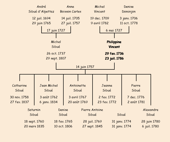 Mariée (21 ans) avec Michel Sibué (19 ans) le 14 juin 1757 à Fontcouverte ![]() |