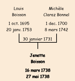 Michèle Claraz Bonnel (°1700 +1742) - 37 ans |