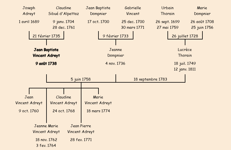 Marié (45 ans) avec Lucrèce Thorain (34 ans) le 18 septembre 1783 à Saint-Jean-de-Maurienne |