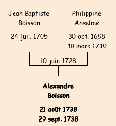 | Père : Jean Baptiste Boisson | Parrain : Alexandre Taravel (fils de Jean) |