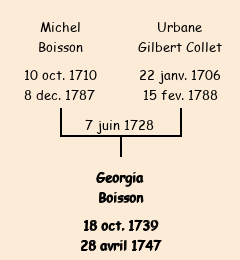 Mère : Urbaine Gilbert Collet | Marraine : Georgia Covarel (fille de Jean Baptiste, soeur du parrain) |