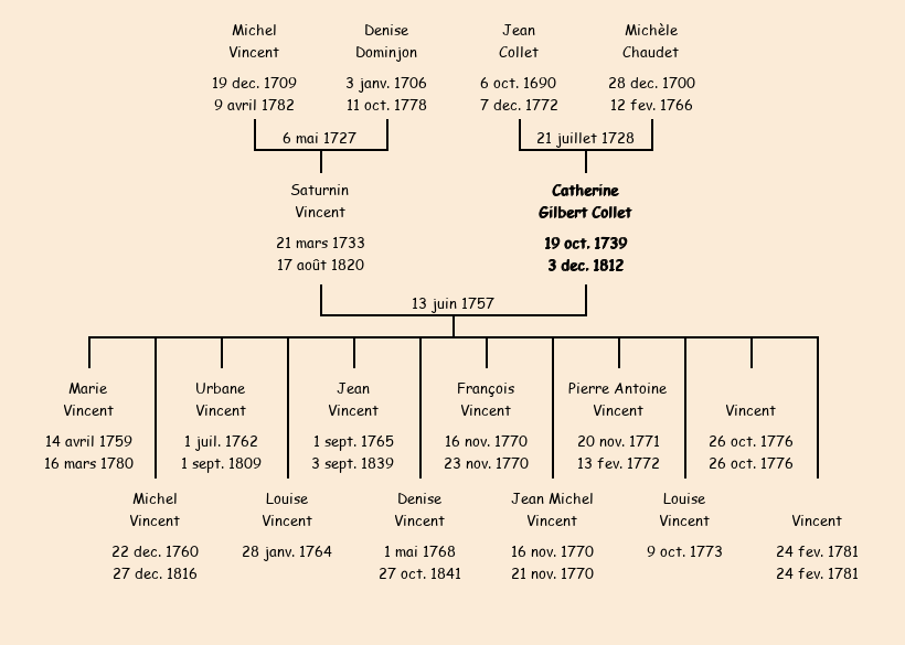 Mariée (17 ans) avec Saturnin Vincent (24 ans) le 13 juin 1757 à Fontcouverte ![]() |