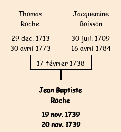 Père : Thomas Roche | Parrain : Jean Baptiste Taravel |