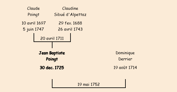 Père : Claude Poingt | Parrain : Jean Baptiste Sibué d'Alpettaz (fils de Noé) |