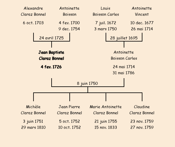 Père : Alexandre Claraz Bonnel | Parrain : Jean Baptiste Claraz Bonnel |