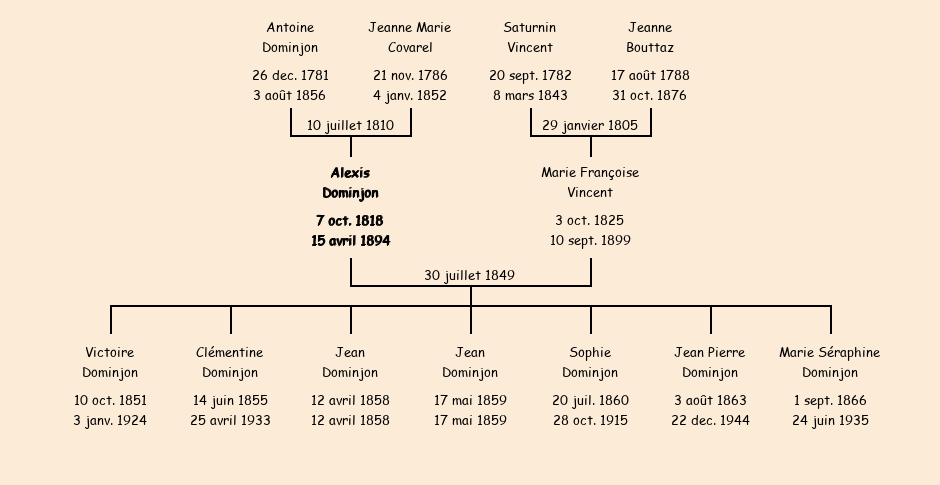 Père : Antoine Dominjon | Parrain : Jean Pierre Dominjon |