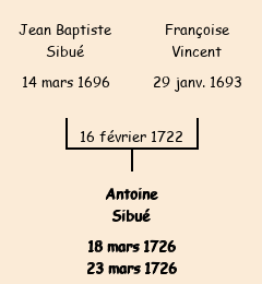 | Mère : Françoise Vincent | Marraine : Jeanne Sibué (fille d'Antoine) |