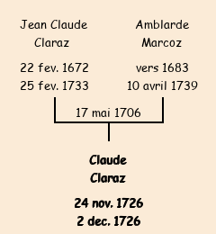 | Père : Jean Claude Claraz | Parrain : Claude Dompnier (égrège, a signé) |