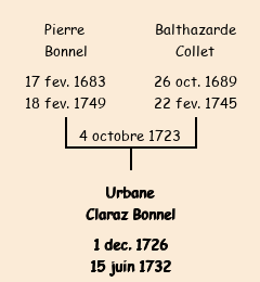 Père : Pierre Claraz Bonnel | Parrain : Jean Boisson Romettaz (fils d'Urbain) |