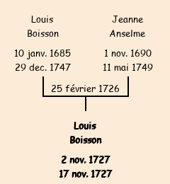Père : Louis Boisson | Parrain : Louis Boisson (fils de Michel décédé, frère de la marraine) |