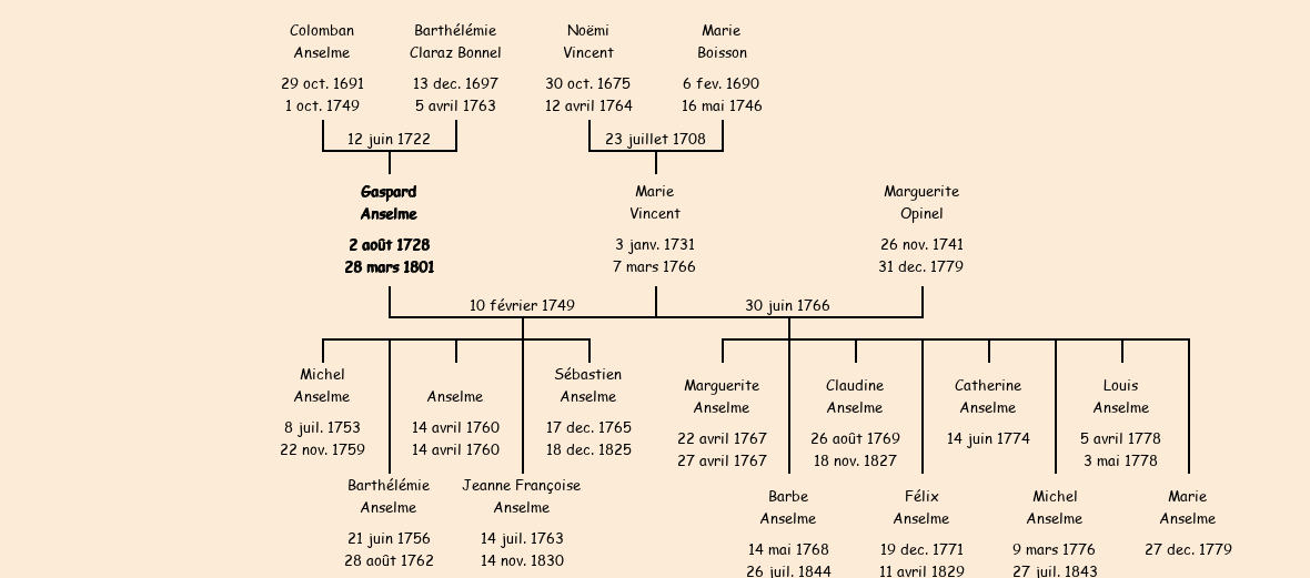 Père : Colomban Anselme | Parrain : Gaspard Claraz Bonnel |