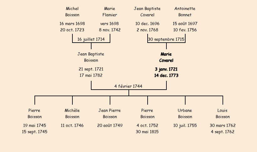 | Epoux : Jean Baptiste Boisson, fils de feu Michel |