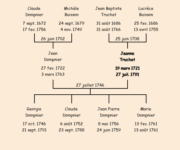 Père : Jean Baptiste Truchet | Parrain : Michel Truchet (fils d'Etienne, frère de la marraine) |