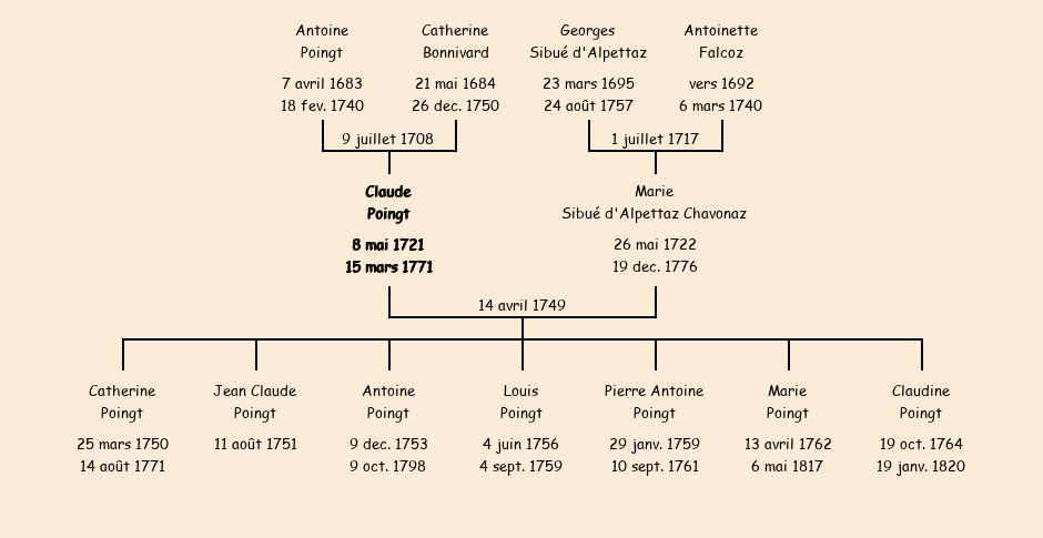 Père : Antoine Poingt | Parrain : Claude Sibué d'Alpettaz (fils d'Antoine) |