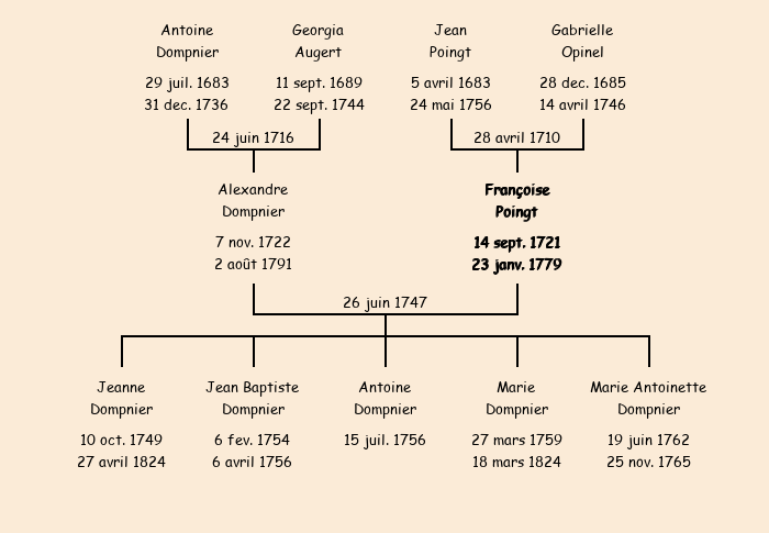 Mère : Gabrielle Opinel | Marraine : Françoise Taravel (veuve d'Antoine Poingt) |