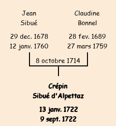 | Père : Jean Sibué d'Alpettaz | Parrain : Crépin Anselme |