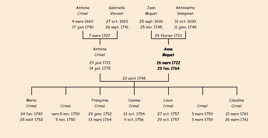 Mariée (26 ans) avec Antoine Crinel (26 ans) le 22 avril 1748 à Fontcouverte ![]() |