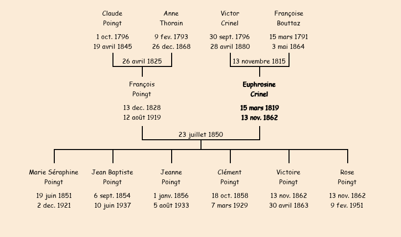 Epouse : Euphrosine Crinel (31 ans, a marqué), fille de Victor (a signé) et de Françoise Bouttaz |