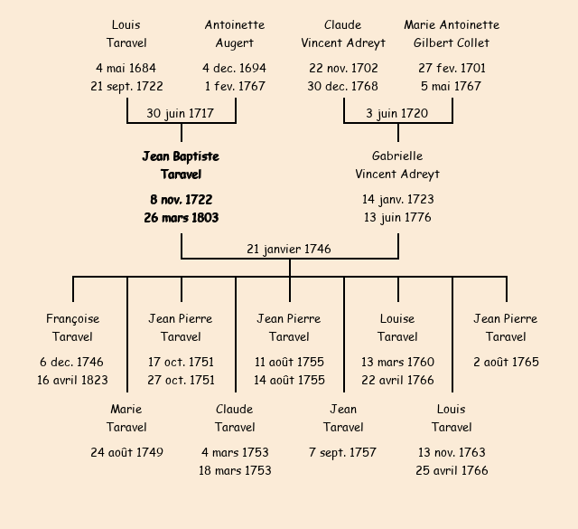Jean Baptiste Taravel apparait dans la consigne des mâles de 1726. |