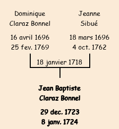 | Mère : Jeanne SIbué | Marraine : Anne Claraz Bonnel (fille de Louis décédé, soeur du parrain) |
