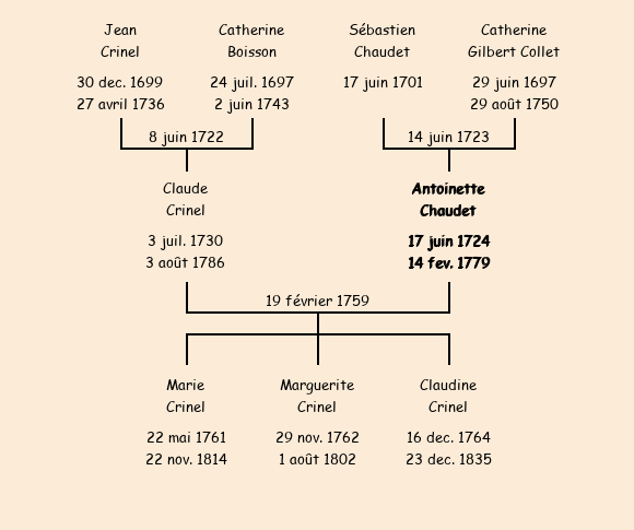 Epouse : Antoinette Chaudet, fille de Sébastien |