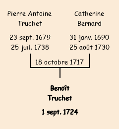 Père : Pierre Antoine Truchet | Parrain : Benoît Bernard (fils de Jean décédé) |