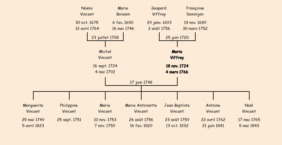 Mère : Françoise Domenjon | Marraine : Marie Viffrey (fille de Michel décédé) |