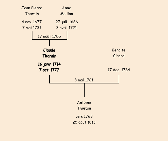 Père : Jean Pierre Thorain | Parrain : Claude Poingt (fils d'Antoine) |