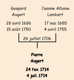Père : Gaspard Augert | Parrain : Pierre Boisson (fils de Jean Claude décédé) |