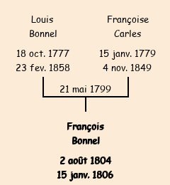 Père : Louis Bonnel, fils de Jean Baptiste | Parrain : François Bonnel |