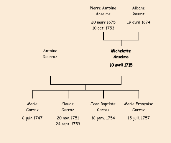 Mère : Urbaine Rossat | Marraine : Michèle Deléglise (épouse de Michel Anselme) |