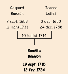 Benoîte Boisson apparait dans le recensement de la population de 1716. |