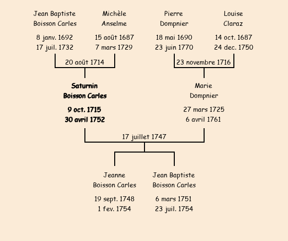 Saturnin Boisson Carles apparait dans le recensement de la population de 1716. |