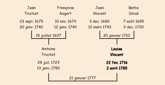 | Louise Vincent apparait dans le recensement de la population de 1716. |