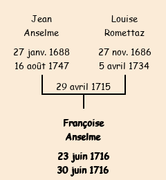 Mère : Louise Boisson Romettaz | Marraine : Françoise Darvaz (épouse de Saturnin Anselme) |