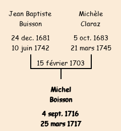 | Père : Jean Baptiste Boisson | Parrain : Michel Claraz |
