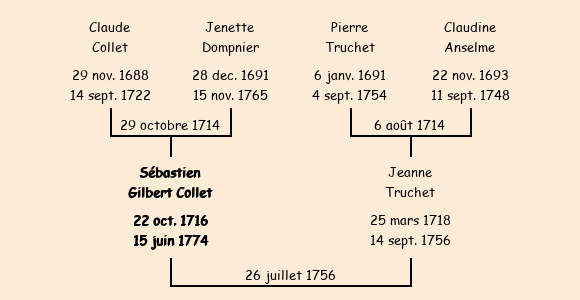 Sébastien Gilbert Collet apparait dans la consigne des mâles de 1726. |
