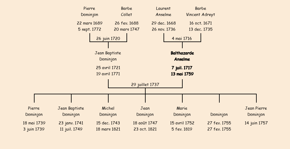 Balthazarde Anselme apparait dans la consigne du sel pour l'année 1759. |