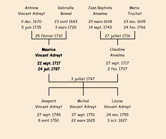 Maurice Vincent Adreyt apparait dans la consigne des mâles de 1726. |